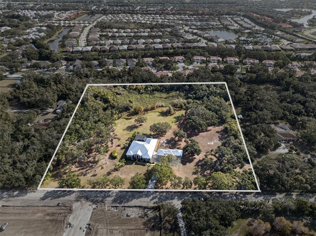 Set behind a sense of quiet seclusion on 6.9 private acres, yet centrally-located in Palmer Ranch, this exceptional estate presents a rare opportunity to own acreage, privacy, and flexibility with no HOA a combination increasingly difficult to find. Solid concrete construction, soaring 12-foot ceilings, and an expansive open layout create a home that feels both grand and welcoming, perfectly suited for refined everyday living and sophisticated entertaining. At the heart of the home, the chefs kitchen impresses with generous scale, dual islands, and quality finishes, thoughtfully renovated just three years ago alongside the bathrooms, while a new roof was also installed at that timeoffering both timeless style and peace of mind. The interiors have been tastefully updated and meticulously maintained, reflecting a commitment to comfort and understated luxury. A separate detached building just steps from the main residence offers exceptional versatility, ideal as a private office, in-law suite, or artist studio, with its own entrance perfectly suited for guests, extended family, or a dedicated workspace. Outdoors, an east-facing lanai opens to a resort-style pool and spa, complete with a cage and lush landscapingall added two years agocreating a serene, private retreat that feels worlds away while remaining close to everything With ample space for multiple vehicles, boats, RVs, or even horses, the property offers a level of freedom rarely found. Zoned RSF-2, the land carries meaningful long-term potential, whether preserved as a private estate or thoughtfully positioned for future subdivision. With county water and sewer coming to the street and a central location near Siesta Key, UTC, Lakewood Ranch, and downtown Sarasota, this is a truly distinctive offeringwhere privacy, elegance, and future opportunity converge in one remarkable setting.